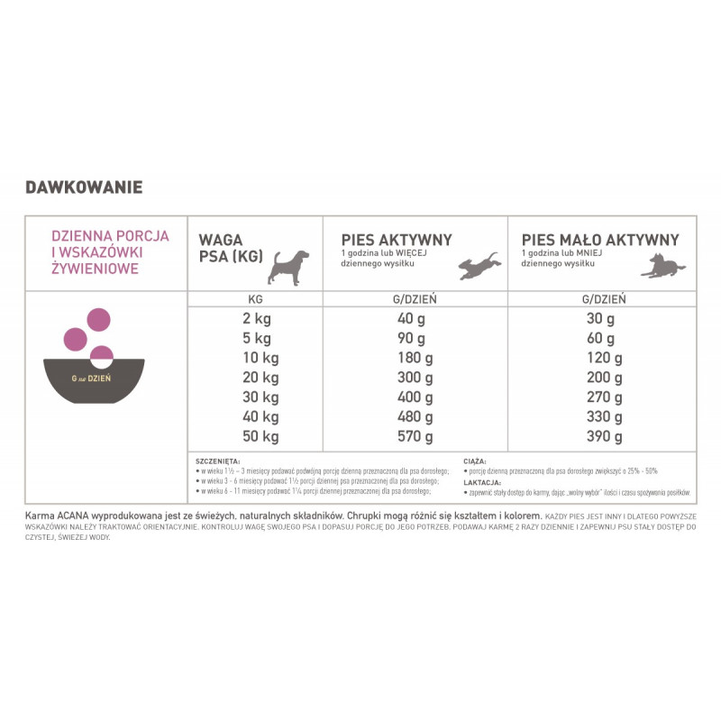 Unikalne w porównaniu do konwencjonalnych karm, jedzenie ACANA dostarcza więcej kalorii z białka i tłuszczu oraz mniej kalorii z węglowodanów, zmniejszając ryzyko otyłości i gwarantując szczytową formę Twojego psa.