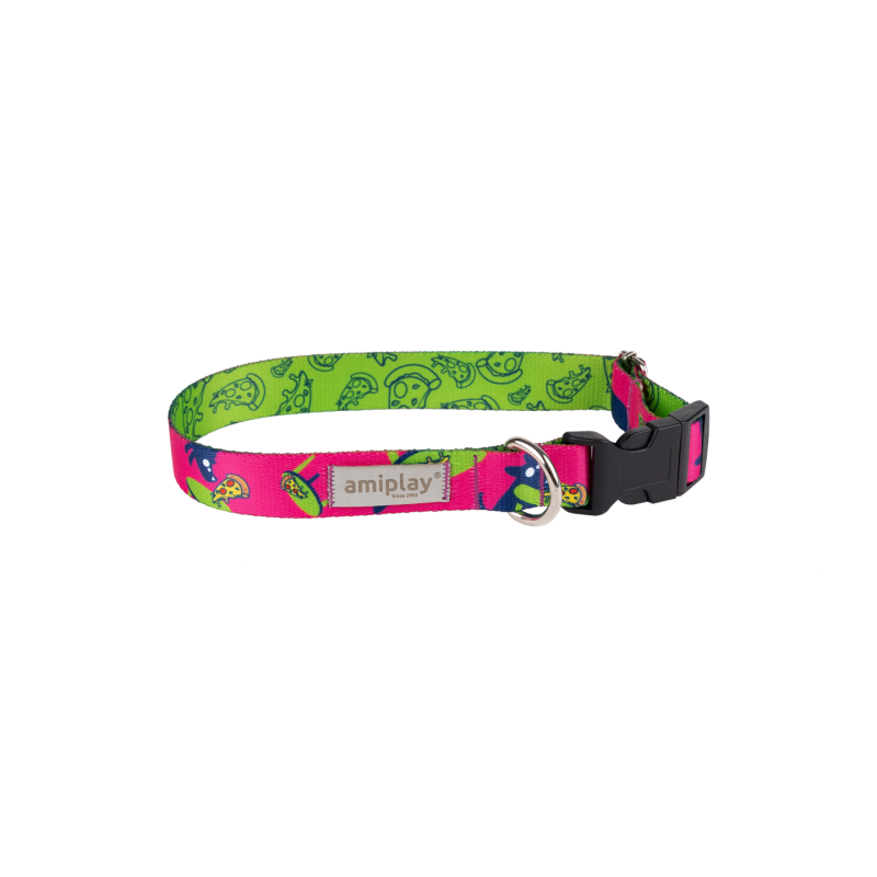 AMIPLAY Obroża regulowana Amik PizzaDog to lekka i wytrzymała obroża spacerowa dla psów ras małych.