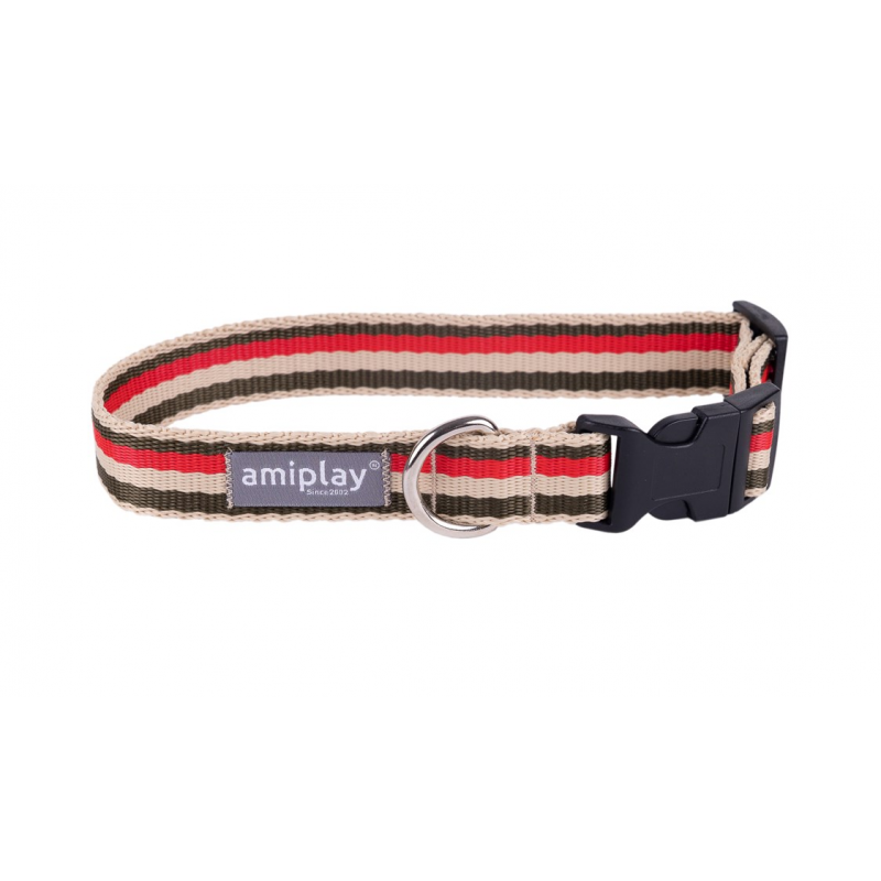 AMIPLAY Obroża regulowana Popular – czerwono oliwkowa to klasyczne i wygodne rozwiązanie dla psów, które potrzebują niezawodnej obroży na co dzień.