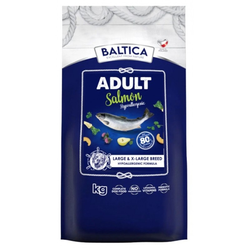 BALTICA EXCELLENT Adult Salmon Hypoallergenic to pełnoporcjowa karma stworzona z myślą o potrzebach psów dużych ras, które zmagają się z alergiami pokarmowymi, problemami dermatologicznymi lub wrażliwym układem pokarmowym. Oparta wyłącznie na jednym źródle białka i tłuszczu zwierzęcego – łososiu atlantyckim – minimalizuje ryzyko wystąpienia reakcji alergicznych.