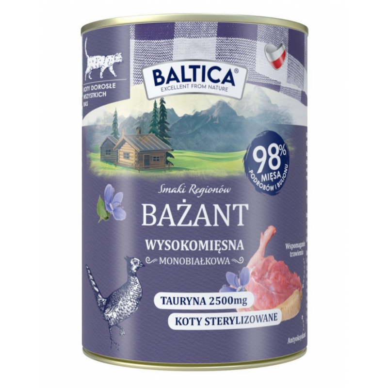 BALTICA Bażant 400g to nie tylko smakowita, monobiałkowa uczta, ale także funkcjonalny posiłek dostosowany do potrzeb kotów wymagających – naturalny, lekkostrawny i odżywczy. Podaruj swojemu kotu wyjątkową dietę inspirowaną naturą i troską o zdrowie.