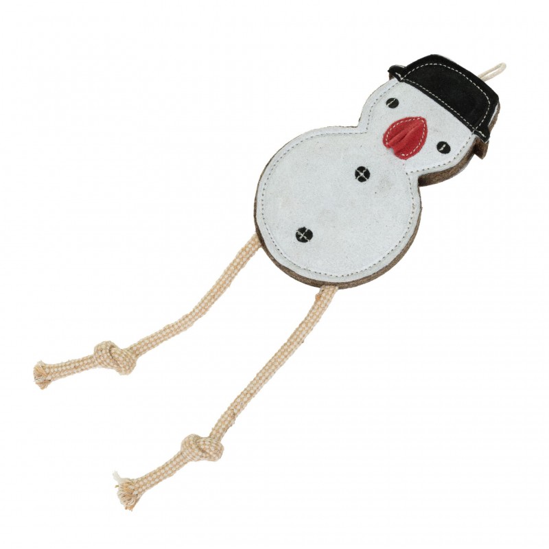 Świąteczna zabawka dla psa BARRY KING – skórzany bałwan z bawełnianą liną, wytrzymała, naturalna i idealna do gryzienia oraz przeciągania. Ekologiczna i trwała.
