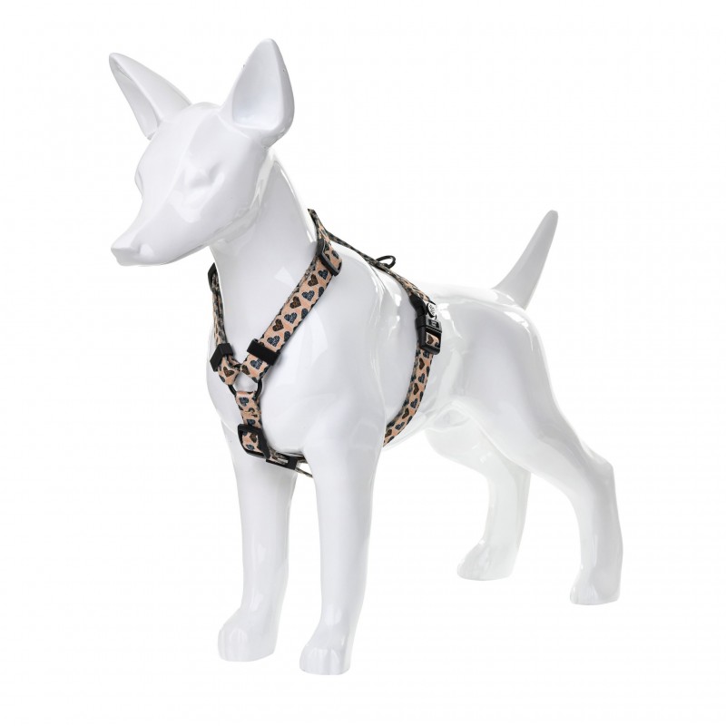 BARRY KING Szelki Safari Love to regulowane szelki dla psa z motywem safari w serduszka, trwała taśma polipropylenowa.