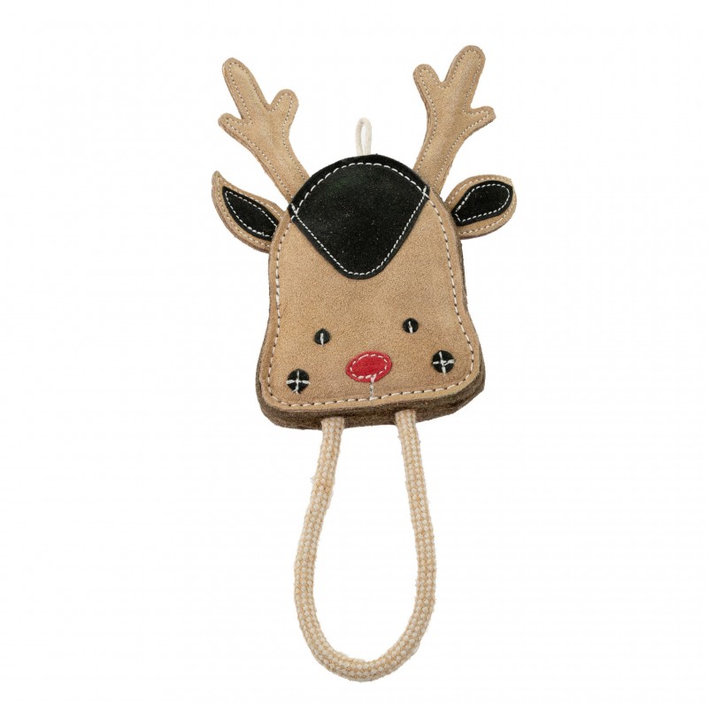 Świąteczna zabawka dla psa BARRY KING - skórzany renifer, wytrzymała, naturalna i idealna do gryzienia oraz przeciągania. Ekologiczna i trwała.