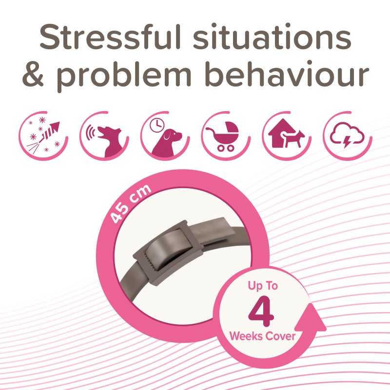 Sposób użycia: załóż obrożę na szyję psa, pozostawiając miejsce na dwa palce między obrożą a szyją. Po dopasowaniu długości odetnij nadmiar paska. Obroża powinna mieć kontakt ze skórą, aby działała prawidłowo. Zaleca się założyć ją co najmniej 15 minut przed potencjalnie stresującą sytuacją. Na czas kąpieli lub intensywnego deszczu obrożę należy zdjąć.
