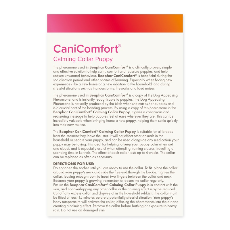 BEAPHAR CaniComfort Calming Collar Puppy to obroża uspokajająca z feromonami dla szczeniąt redukująca stres i niepożądane zachowania.