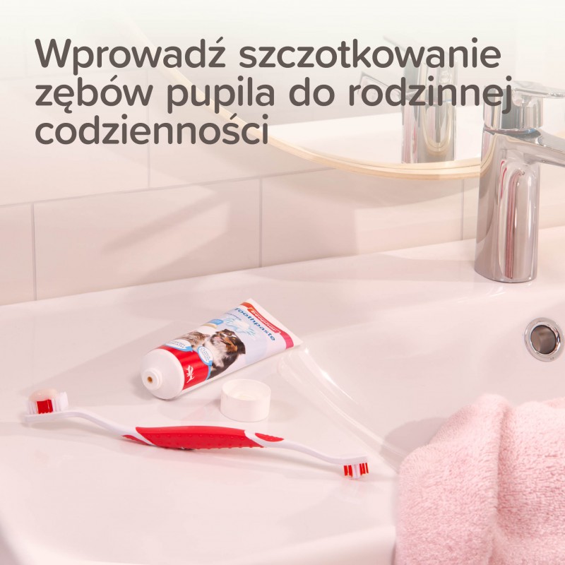 Beaphar Combipack Dental Adult 100 g to pasta do zębów z wątróbką i szczoteczka dla psa i kota, skuteczna higiena jamy ustnej.