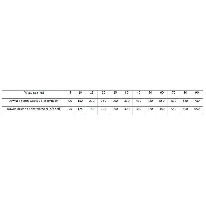 Pełnoporcjowa, bezzbożowa karma dla psów z dodatkiem łososia i ziemniaków. Przeznaczona jest dla starszych psów wszystkich ras (powyżej 7 lat). Nadaje się również dla psów z tendencją do przybierania na wadze.
