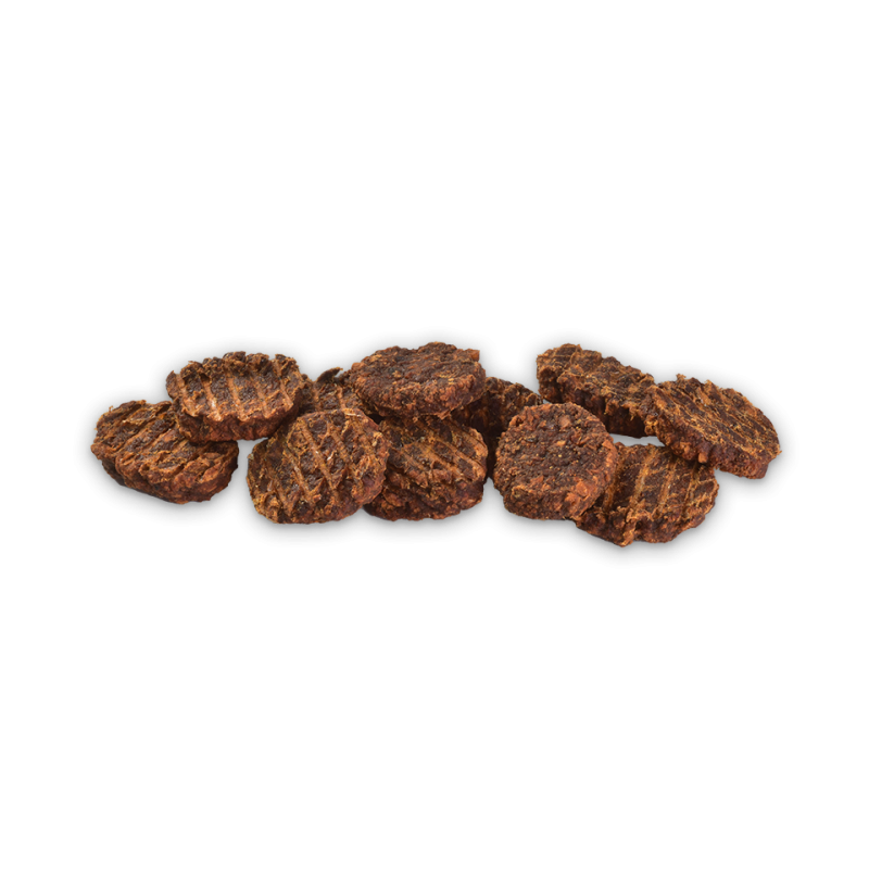 - Mięsne monety – idealny rozmiar treningowy – małe, wygodne porcje doskonałe jako nagroda podczas szkolenia