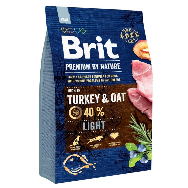 BRIT Premium by Nature Light zawiera składniki, takie jak mięso z kurczaka, indyka i łososia, które dostarczają psu wysokiej jakości białka oraz niezbędne kwasy tłuszczowe omega-3 i omega-6. Karma zawiera również węglowodany złożone, które zapewniają psu energię, ale jednocześnie są wolniej przyswajalne przez organizm, dzięki czemu zapewniają uczucie sytości na dłużej.