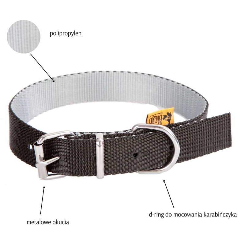 Regulowana długość oraz metalowa klamra pozwalają na precyzyjne dopasowanie obroży do szyi psa, zapewniając komfort noszenia bez ryzyka otarć czy wycierania sierści. Chromowane, nierdzewne okucia gwarantują trwałość i odporność na korozję, dzięki czemu obroża świetnie sprawdza się w każdych warunkach pogodowych – również podczas deszczowych spacerów.