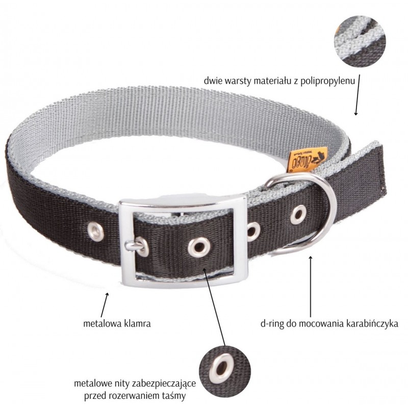 Wyjątkowa trwałość i komfort użytkowania gwarantują mocne szycia, solidna konstrukcja i chromowane, nierdzewne okucia. Obroża jest lekka i regulowana, dzięki czemu bez problemu dopasujesz ją do budowy psa, a metalowa klamra zapewni bezpieczeństwo i wygodę podczas codziennego użytkowania.