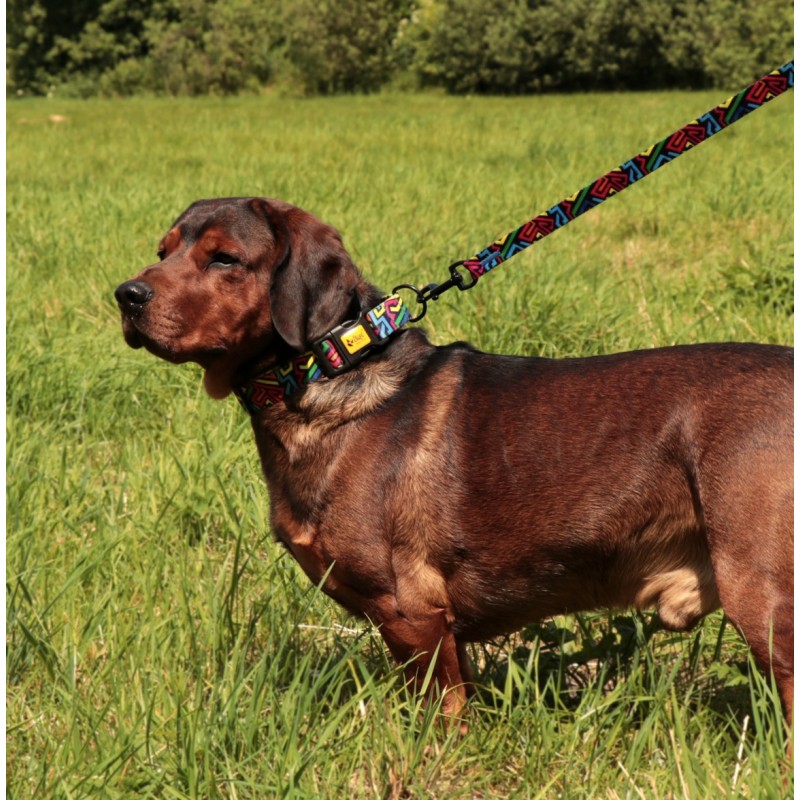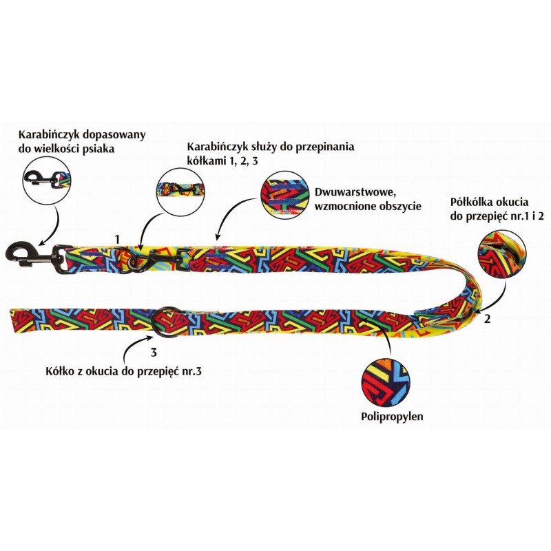 Wprowadź letni nastrój do codziennych spacerów z psem dzięki smyczy przepinanej z kolekcji City Graffiti! Intensywne, kolorowe wzory w stylu ulicznego graffiti przyciągają spojrzenia i dodają energii każdej wspólnej przygodzie. To nie tylko smycz – to funkcjonalny i designerski element codziennego wyposażenia Twojego pupila.