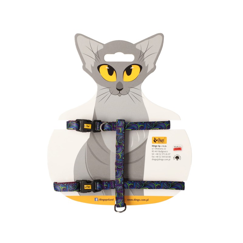DINGO Szelki dla kota America Missisipi to wodoodporne, regulowane szelki z trwałym nadrukiem, zapewniające kotu komfort i bezpieczeństwo podczas spacerów.