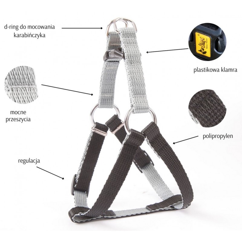 • bezpieczne dla szyi i tchawicy – szelki rozkładają siłę szarpnięcia na klatkę piersiową