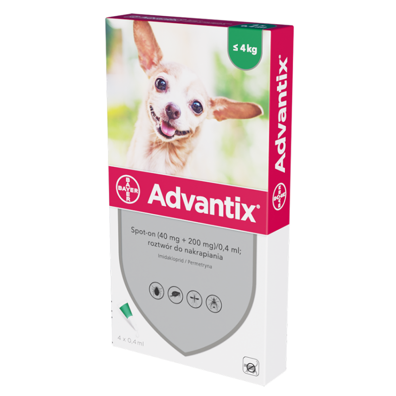 Dobra informacja dla właścicieli psów jest taka, że z ochrony, jaką daje roztwór Advantix, mogą korzystać zarówno szczenięta (powyżej 7 tygodnia życia), jak i zwierzęta dorosłe. Jeśli chodzi o zwierzaki dorosłe, Advantix przygotował cztery warianty produktu (wielkości pipet), w zależności od wagi pupila: