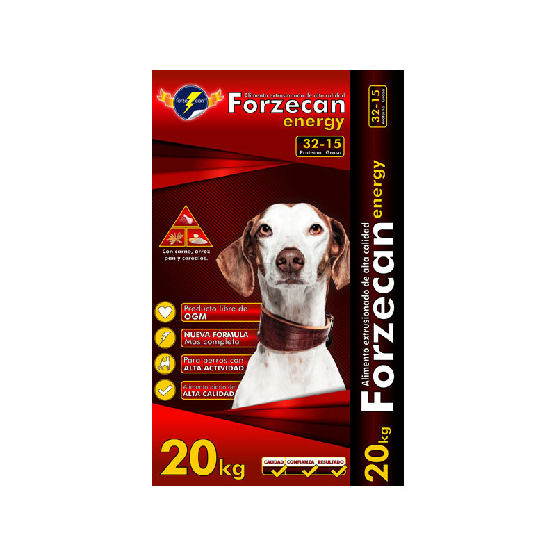 Forzecan Energy to kompleta, bogata w mięso karma o smaku wołowiny z kurczakiem, dla psów dorosłych, dużych i średnich ras. Wysokoenergetyczna karma jest idealnym posiłkiem dla psów aktywnych, pracujących i sportowców. Produkt nie zawiera składników modyfikowanych genetycznie (bez GMO).