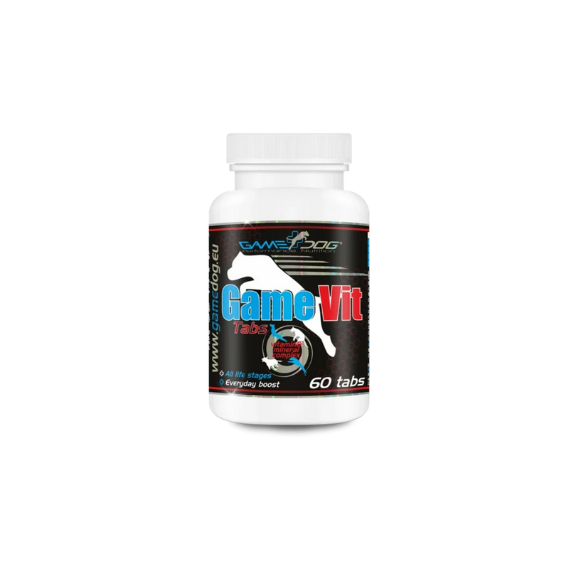 GAME DOG GameVit Tabs 60 tabletek to kompleksowy suplement witaminowo–mineralny dla psów w każdym wieku, stworzony z myślą o codziennym wsparciu zdrowia, odporności i witalności. Praktyczna forma tabletek ułatwia podawanie, a zaawansowana receptura odpowiada na realne potrzeby organizmu psa – niezależnie od jego wieku, aktywności czy trybu życia.