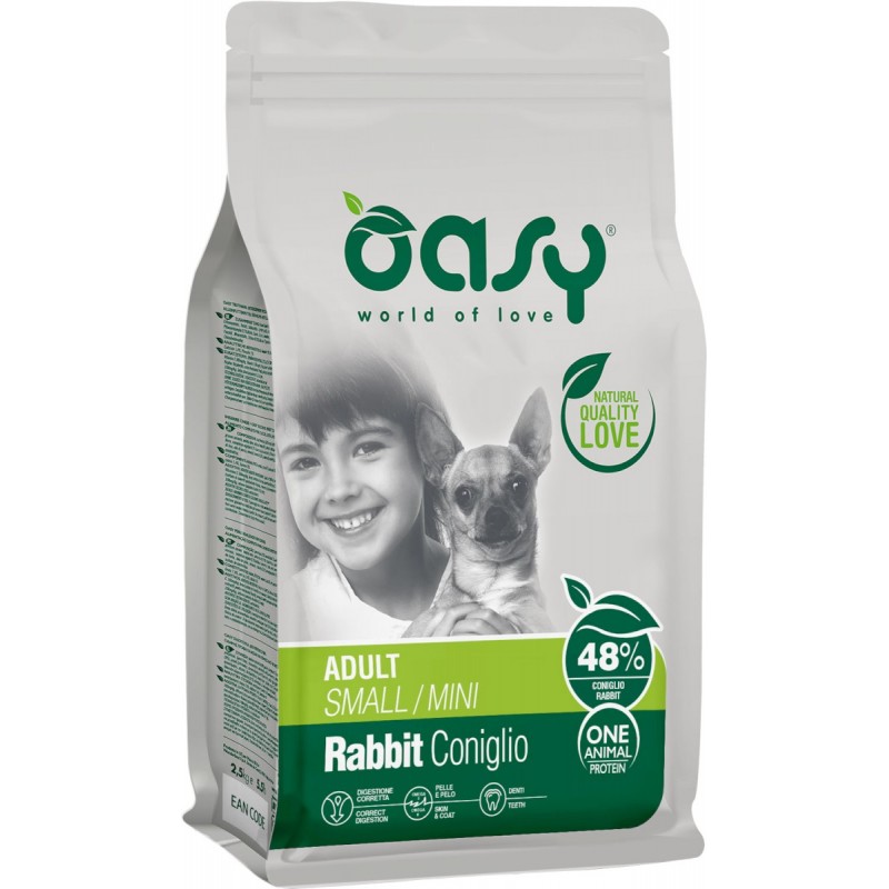 OASY z Królikiem to kompletna, pełnowartościowa i smakowita karma, która zadba o zdrowie Twojego małego psa na wielu poziomach: od sprawnego trawienia, przez piękną sierść, aż po zdrowe zęby. Lekka receptura i monobiałkowy skład czynią ją idealnym wyborem dla psów o szczególnych potrzebach dietetycznych.