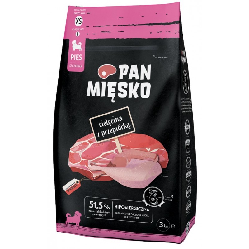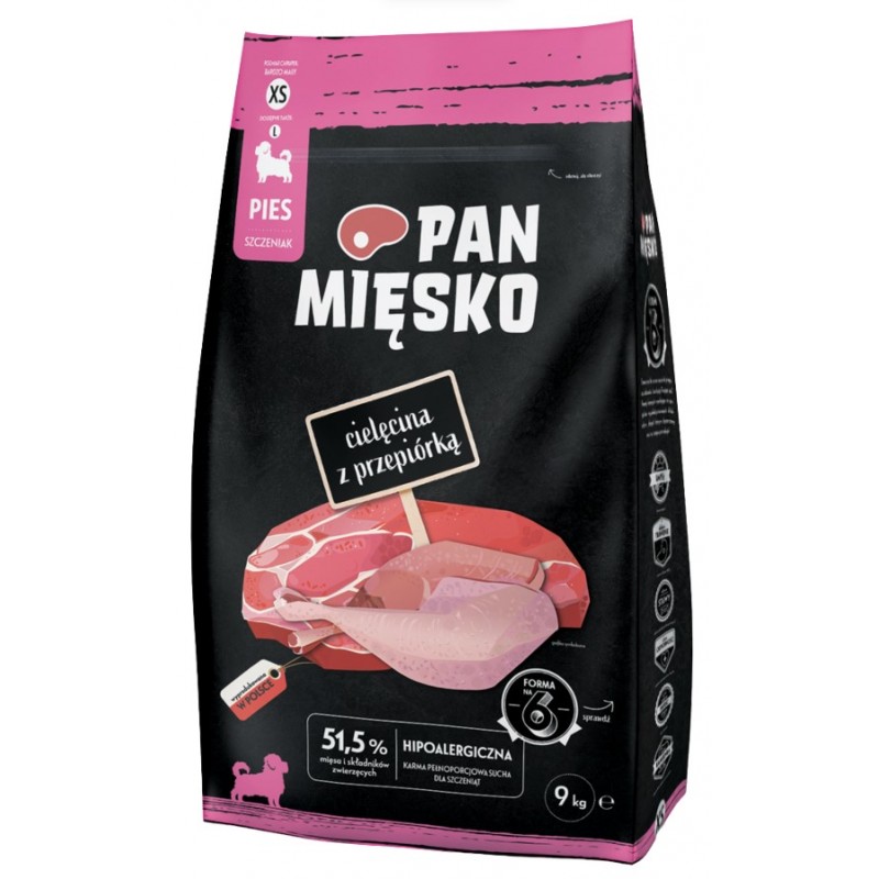 Z Pan Mięsko Twoje szczenię otrzymuje pełne wartości odżywczych, hipoalergiczne i łatwo strawne posiłki, które pomagają mu zdrowo rosnąć i cieszyć się każdym dniem pełnym energii i zabawy.