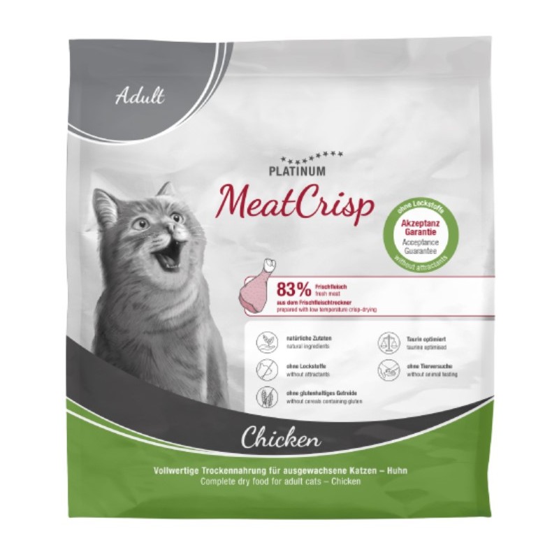 Wyjątkowa karma sucha przygotowywana w innowacyjnym urządzeniu Freshmeatdryer, które pozwala zachować naturalne mikroelementy i aminokwasy świeżego mięsa. Dzięki temu MeatCrisp stanowi zdrowszą i bardziej naturalną alternatywę niż większość dostępnych karm dla kotów. Bogaty smak kurczaka i chrupiąca tekstura sprawiają, że koty jedzą ją z apetytem, pozostając przy tym zrelaksowane, stabilne i szczęśliwe – bez potrzeby stosowania sztucznych atraktantów.