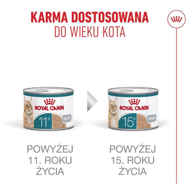 Mokra karma ROYAL CANIN® AGEING 11+ delikatny mus, opracowana została specjalnie dla kotów w wieku powyżej 11 lat.