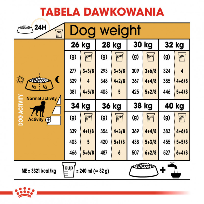 Karma ROYAL CANIN® Labrador Retriever Sterilised odpowiada specyficznym wymaganiom pokarmowym dorosłych, wysterylizowanych psów rasy labrador Retriever, właśnie takim jak twój dzięki podwyższonej zawartości białka (30%) oraz zmniejszeniu podaży tłuszczu (11%). Zawiera również L-karnitynę, aminokwas, który odgrywa kluczową rolę w wykorzystywaniu rezerw tłuszczowych do produkcji energii przez komórki. Unikalna receptura została wzbogacona we włókno roślinne, które sprzyja uczuciu sytości i utrzymaniu prawidłowej masy ciała psa.