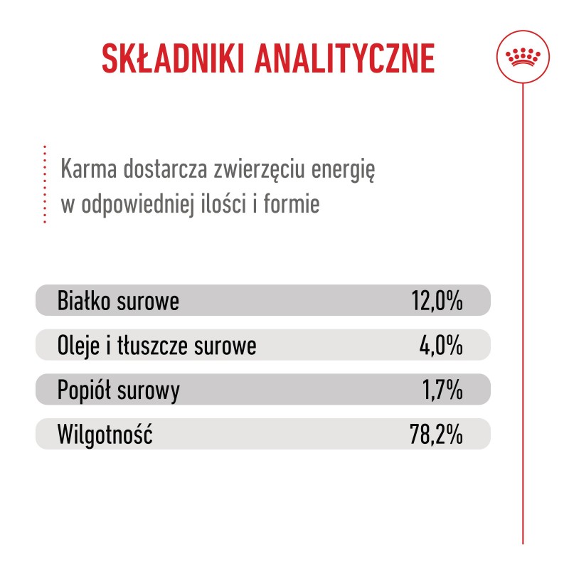 Karma mokra ROYAL CANIN® Sterilised Kitten w sosie została opracowana specjalnie w celu pokrycia potrzeb pokarmowych wysterylizowanych kociąt w drugim etapie wzrostu. Receptura jest odpowiednia dla kociąt w wieku 6-12 miesięcy, po sterylizacji, które przechodzą okres znacznych zmian fizycznych i behawioralnych.