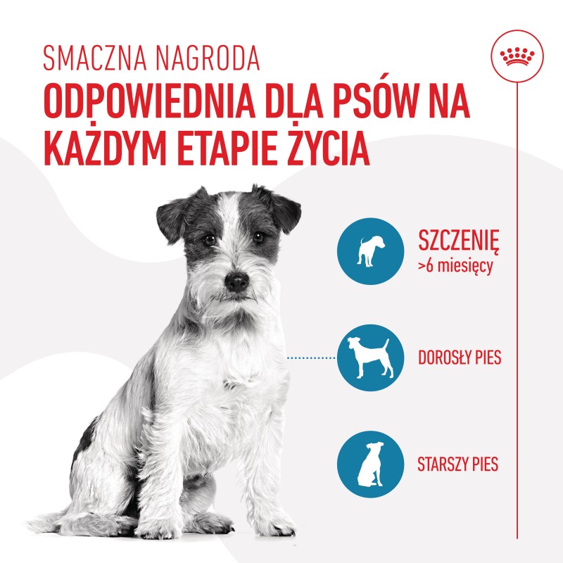 Nauka oparta na nagrodach jest kluczowa dla skutecznego treningu. Właśnie dlatego opracowaliśmy produkt ROYAL CANIN® TRAINING TREATS, doskonałe połączenie smaku i wartości odżywczych, który jest odpowiedni do stosowania jako nagroda u psów w różnym wieku