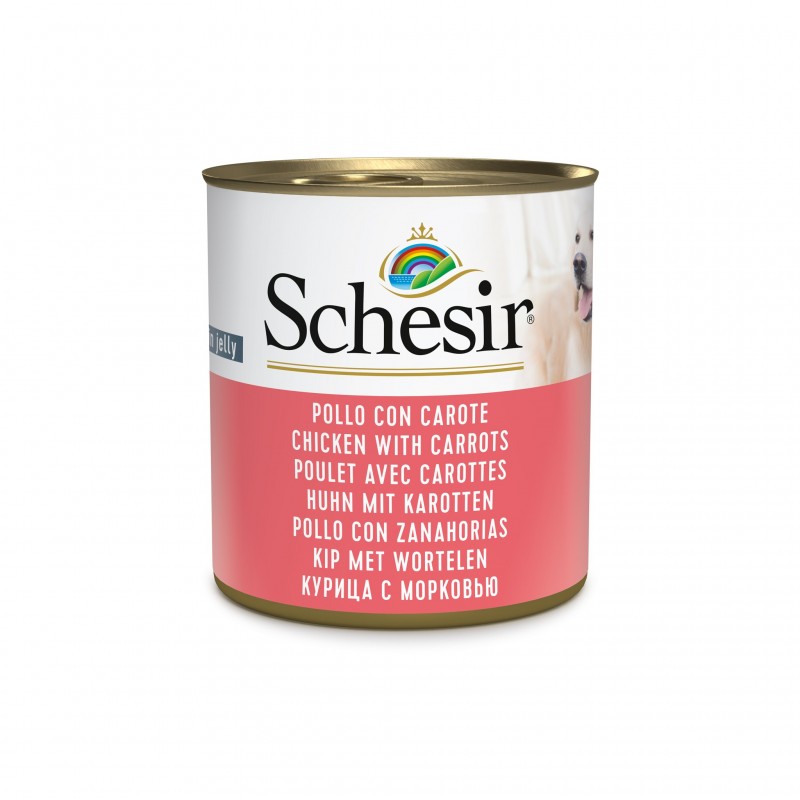 Schesir Kurczak z Marchewką w Galarecie 285g to naturalna, smakowita karma mokra, która doskonale uzupełnia codzienną dietę psa, dostarczając mu lekkostrawnego białka oraz wartościowych składników odżywczych. Receptura opiera się na wysokiej zawartości mięsa kurczaka, gotowanego na parze i przygotowywanego z wyjątkową starannością, dzięki czemu zachowuje delikatność, aromat i pełnię naturalnego smaku.