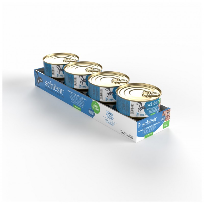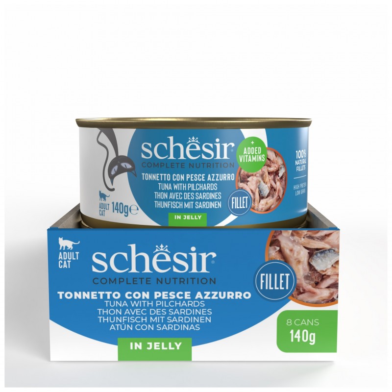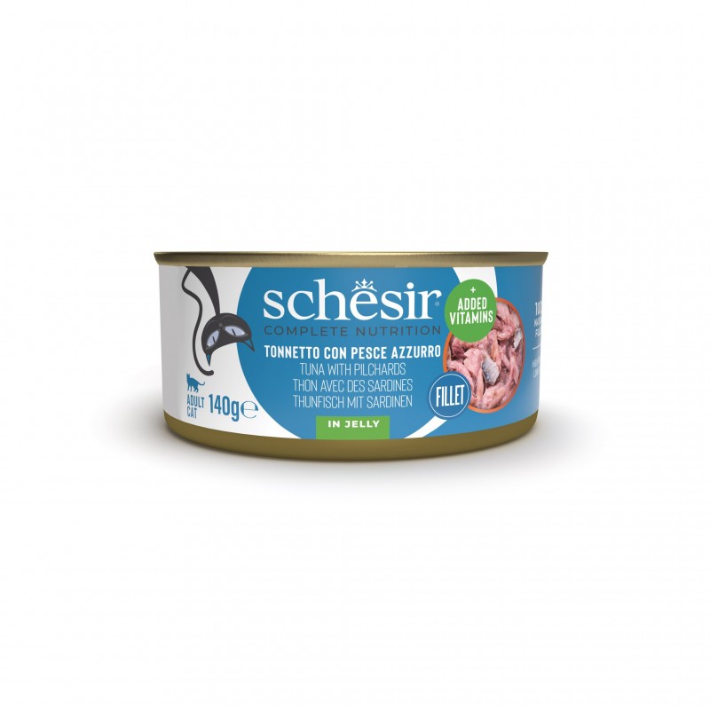 Schesir dokłada wszelkich starań, aby każda porcja była tak naturalna, jak to tylko możliwe. Tuńczyk poławiany na otwartym morzu oraz starannie wyselekcjonowane sardynki tworzą wysokobiałkowy, minimalnie przetworzony posiłek, idealnie dopasowany do potrzeb kotów o drapieżnej naturze. Ręczne przygotowanie filetów oraz delikatne gotowanie na parze pozwalają zachować ich naturalną strukturę, soczystość i pełnię aromatu. Galaretka zwiększa smakowitość, wspiera prawidłowe nawodnienie i jest świetnym rozwiązaniem dla kotów preferujących wilgotne, lekkie konsystencje. Niska zawartość węglowodanów odpowiada naturalnej diecie mięsożercy.