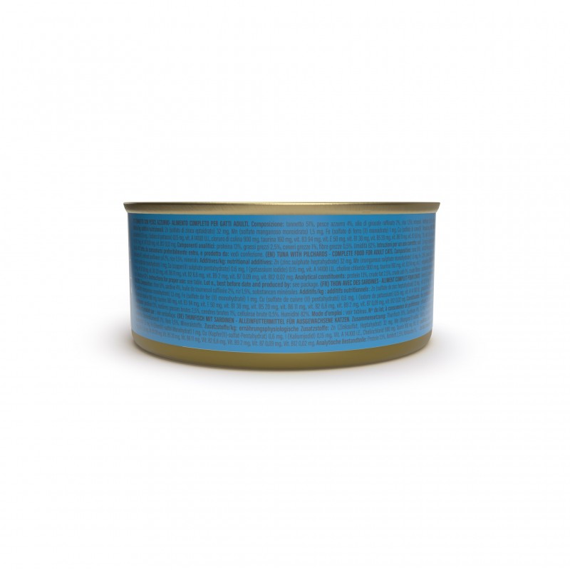 - tuńczyk 51%, sardynki 4%, rafinowany olej słonecznikowy 2%, ryż 1,5%, minerały.