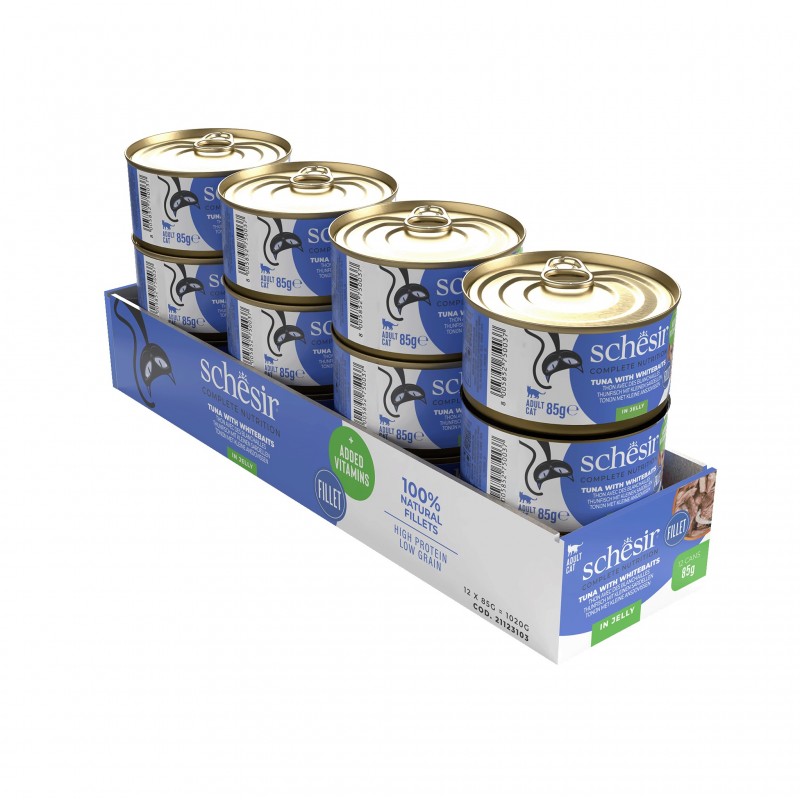 Schesir dokłada wszelkich starań, aby każda porcja była tak naturalna, jak to tylko możliwe. Tuńczyk poławiany na otwartym morzu oraz starannie dobrane szprotki tworzą wysokobiałkowy, minimalnie przetworzony posiłek, który idealnie odpowiada biologicznym potrzebom drapieżnika. Ręczne przygotowanie filetów oraz delikatne gotowanie na parze pozwalają zachować ich naturalną strukturę, świeżość i bogaty aromat. Galaretka dodatkowo zwiększa smakowitość i wspiera odpowiednie nawodnienie, co czyni tę karmę doskonałą także dla kotów preferujących wilgotne, lekkie konsystencje. Niska zawartość węglowodanów doskonale wpisuje się w naturalny model żywienia mięsożerców.