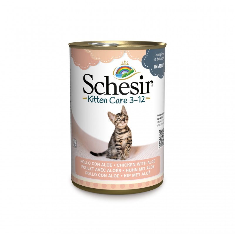 Schesir Kitten Care Filet z Kurczaka w Galaretce z Aloesem to połączenie naturalnych składników, doskonałego smaku i precyzyjnie zbilansowanych wartości odżywczych, które wspierają harmonijny rozwój, odporność i witalność kocięcia już od pierwszych miesięcy życia.
