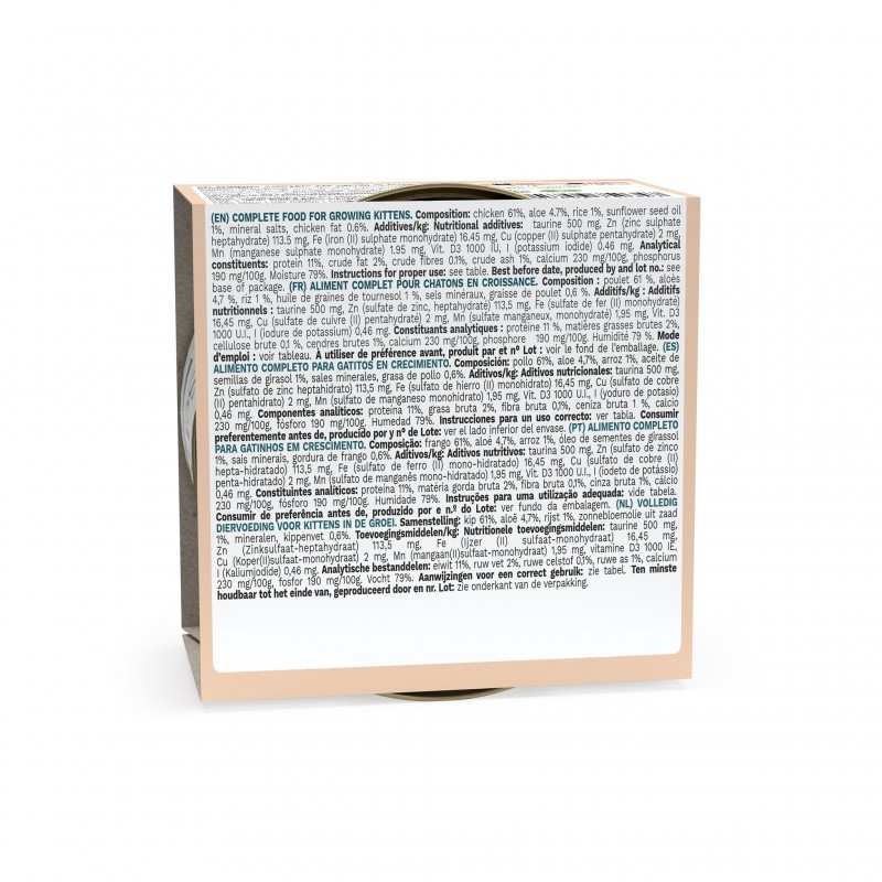 Soczysta galaretka nadaje karmie wyjątkową smakowitość oraz wspiera prawidłowe nawodnienie młodego organizmu. Dodatek aloesu wspomaga delikatny układ pokarmowy kociąt i pomaga budować naturalną odporność, natomiast olej z nasion słonecznika dostarcza cennych kwasów tłuszczowych omega-3 i omega-6, wspierających zdrową skórę oraz lśniącą sierść.