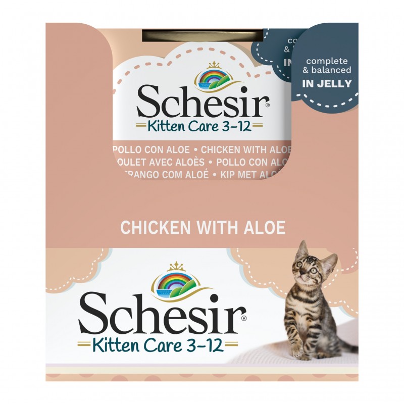 Schesir Kitten Care Filet z Kurczaka w Galaretce z Aloesem to połączenie naturalnych składników, doskonałego smaku i precyzyjnie zbilansowanych wartości odżywczych, które wspierają harmonijny rozwój, odporność i witalność kocięcia już od pierwszych miesięcy życia.