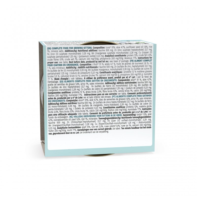 Lekka galaretka nadaje karmie apetyczną, wilgotną konsystencję, wspierając nawodnienie młodego organizmu. Dodatek naturalnego aloesu wspomaga pracę wrażliwego układu pokarmowego i odporność, a olej z nasion słonecznika dostarcza kwasów omega-3 i omega-6, dbających o zdrową skórę, lśniącą sierść oraz ogólną witalność kocięcia.