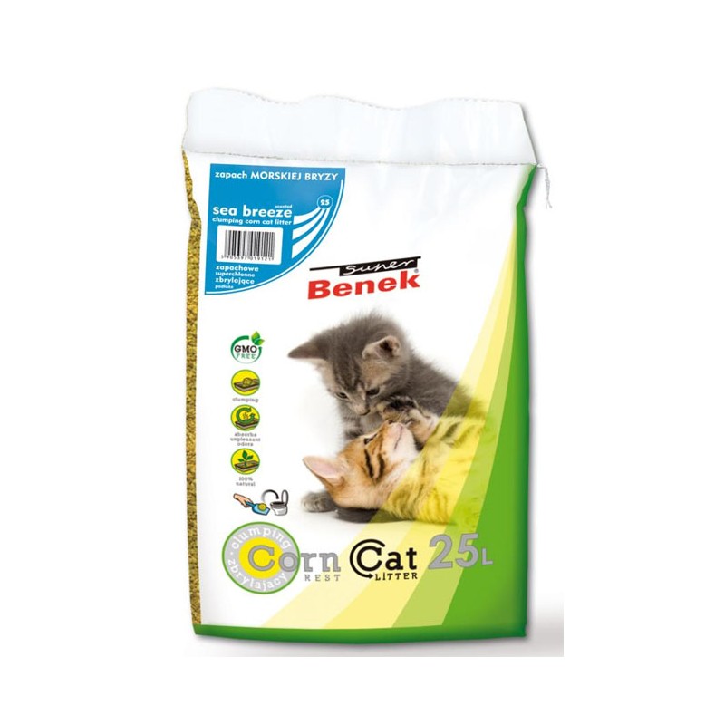 Super Benek CORN to seria żwirków nowej generacji wyprodukowanych z naturalnego surowca roślinnego, bez dodatków chemicznych. Produkt został stworzony w odpowiedzi na potrzeby konsumentów, poszukujących podłoży o jeszcze lepszych właściwościach.