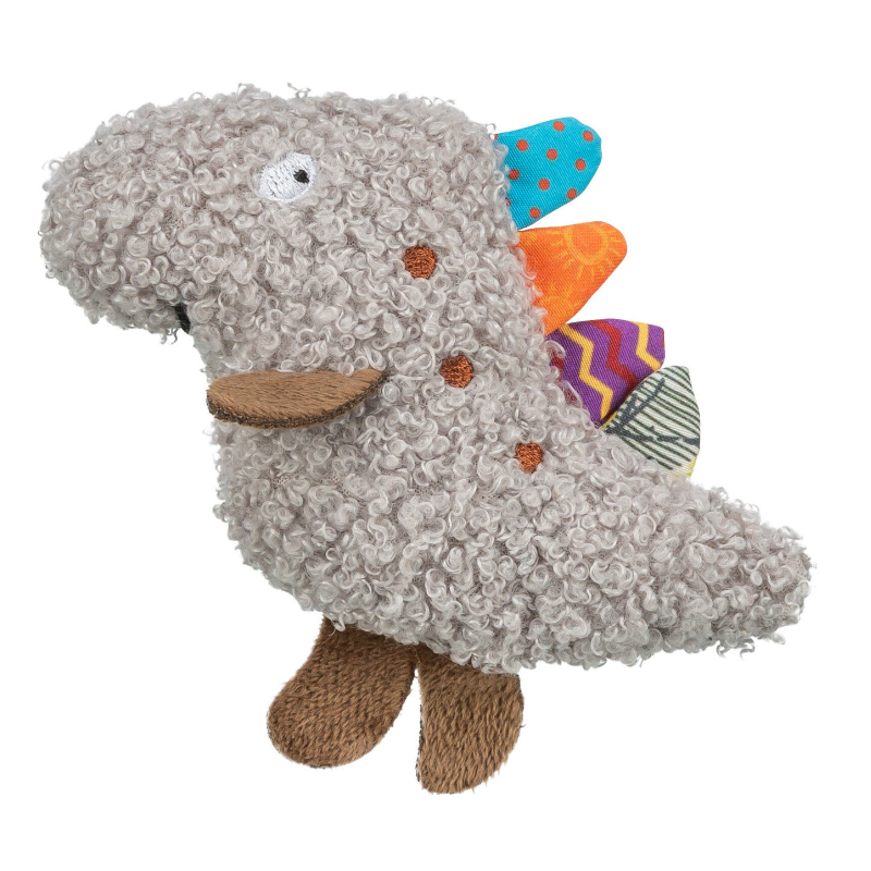 TRIXIE Dinozaur z kocimiętką to miękka zabawka dla kota, która pobudza ciekawość, instynkt łowiecki i zachęca do aktywnej zabawy.