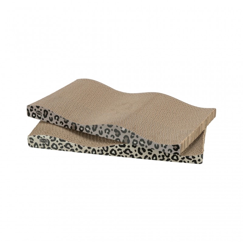 TRIXIE Leo drapak kartonowy dla kota 44 × 6 × 25 cm – zestaw 2 sztuk kartonowych drapaków w kolorze brązowym i kremowym. Zatwierdzony do drapania, trwały, idealny do zabawy i pielęgnacji pazurów kota.