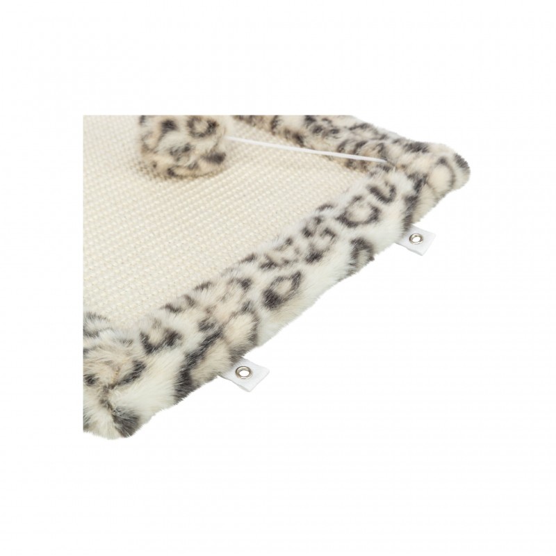 Mata została wykonana z wytrzymałego sizalu oraz miękkiego pluszu poliestrowego o gramaturze 240 g/m², co zapewnia odpowiednią teksturę do drapania i wygodę podczas użytkowania. Od spodu zastosowano warstwę EVA, która zwiększa stabilność i trwałość produktu, zapobiegając przesuwaniu się maty.