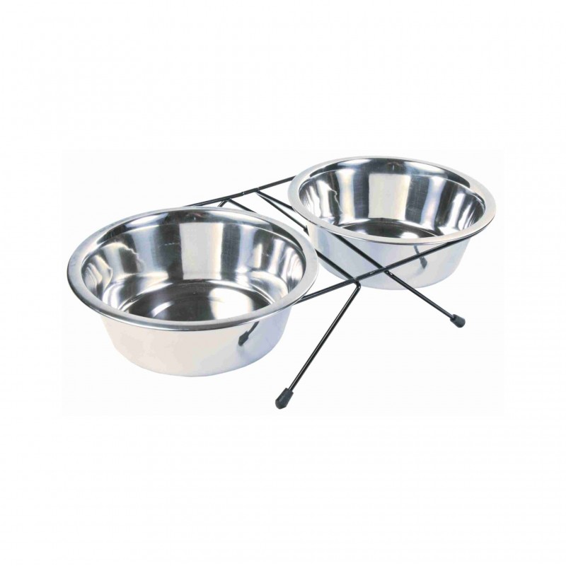 TRIXIE stojak z miskami dla psa to stabilny zestaw do karmienia z wymiennymi miskami ze stali nierdzewnej. Antypoślizgowe nóżki, solidny metalowy stojak i łatwe czyszczenie zapewniają wygodę, higienę i estetykę podczas codziennych posiłków. Idealny zestaw misek na karmę i wodę dla psa.