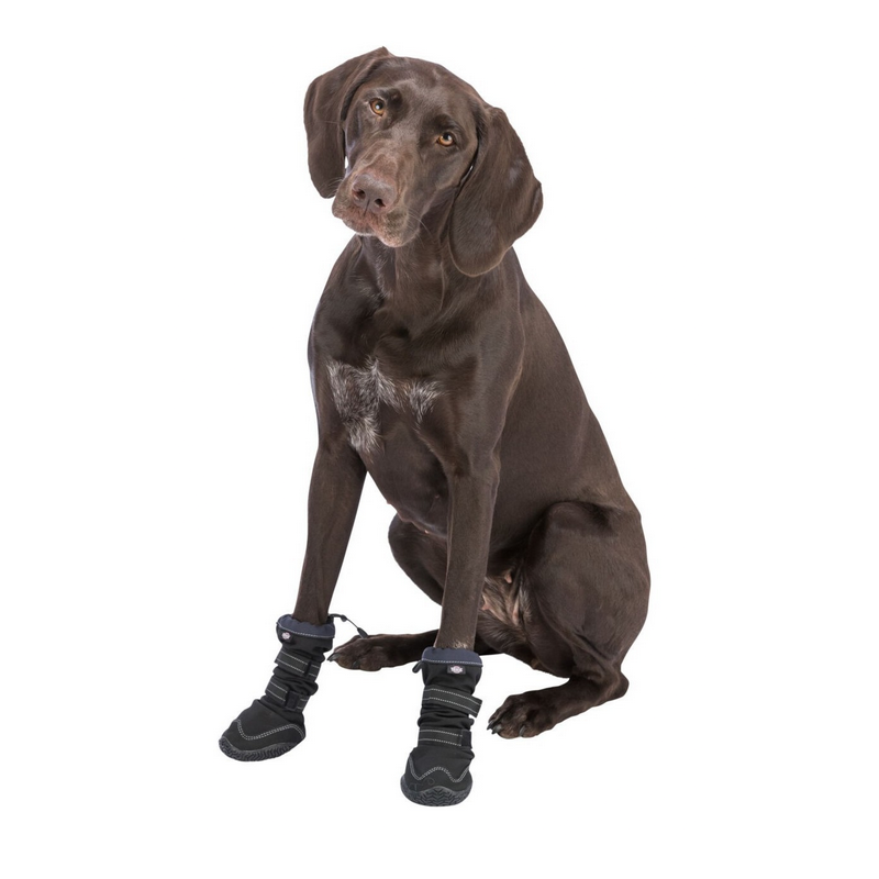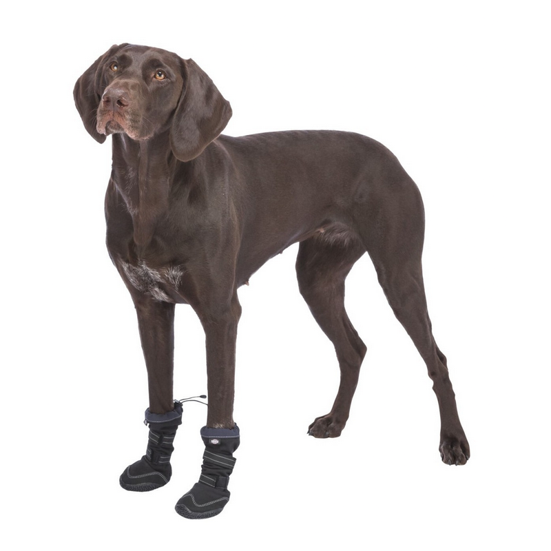 TRIXIE Walker Active Long to czarne buty ochronne dla psa, które skutecznie chronią łapy przed kamieniami, solą drogową i gorącą nawierzchnią.