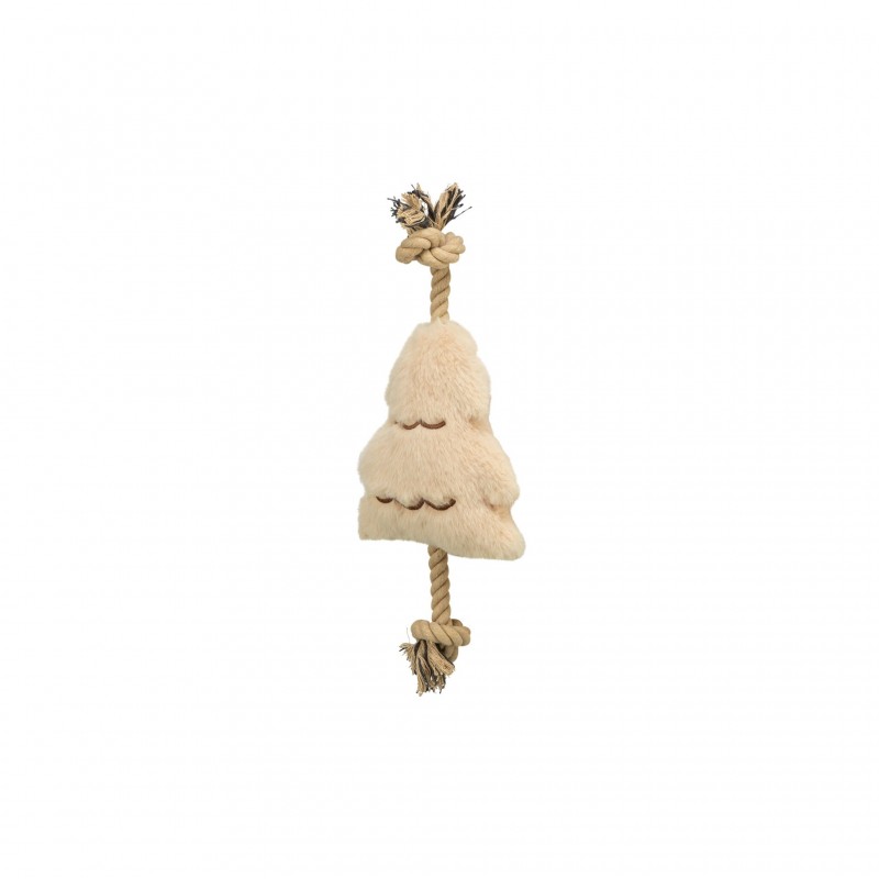 Miękka struktura materiału sprawia, że zabawka idealnie nadaje się do przytulania i spokojniejszej zabawy, natomiast bawełniana linka zachęca do interakcji – przeciągania, aportowania czy wspólnej zabawy z opiekunem. Dzięki temu choinka nie tylko dostarcza rozrywki, ale również pomaga redukować stres i nudę, wspierając naturalną potrzebę gryzienia.