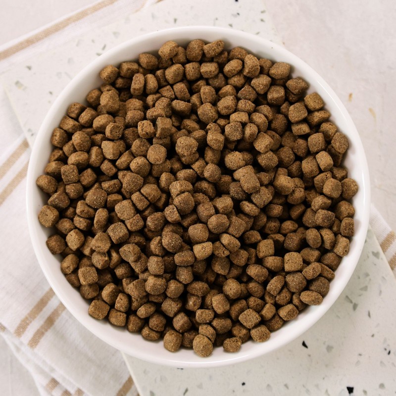 Receptura została wzbogacona o probiotyk Enterococcus faecium oraz prebiotyki (MOS, cykoria, drożdże), które wspierają mikroflorę jelitową i odporność. Dodatkowo olej z łososia i siemię lniane dostarczają cennych kwasów Omega-3 i Omega-6, dbając o zdrową skórę i lśniącą sierść.