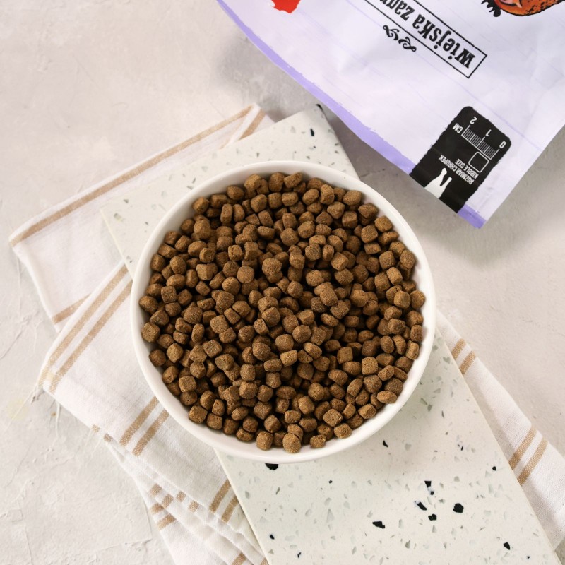 Wiejska Zagroda Kurczak z przepiórką dla kota po sterylizacji to bezzbożowa karma sucha wspierająca wagę i metabolizm.
