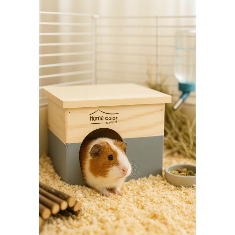 ZOLUX Domek drewniany Home Color prostokątny to naturalna chatka z drewna sosnowego dla gryzoni i królików. Zapewnia komfortowy odpoczynek, wspiera ścieranie zębów i estetycznie uzupełnia wyposażenie klatki.