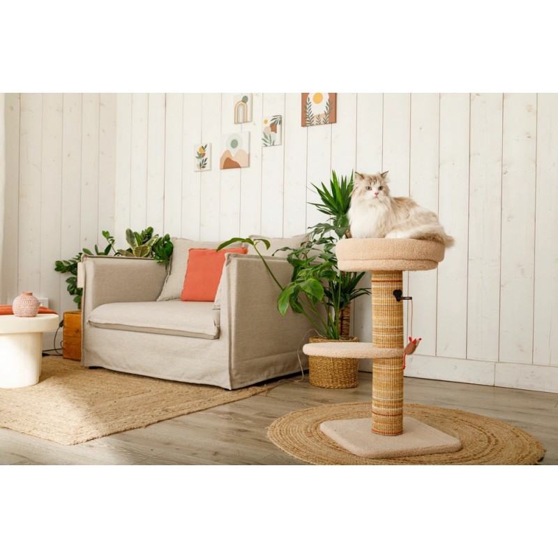 ZOLUX Drapak dla kota BOREAL 70 cm beżowy to kompaktowe, a jednocześnie funkcjonalne centrum zabawy i relaksu, stworzone z myślą o kociętach oraz dorosłych kotach o wadze do 5 kg. Drapak łączy w sobie solidny słupek do drapania, wygodną platformę oraz miękkie legowisko na szczycie, które pełni rolę bezpiecznego punktu obserwacyjnego.