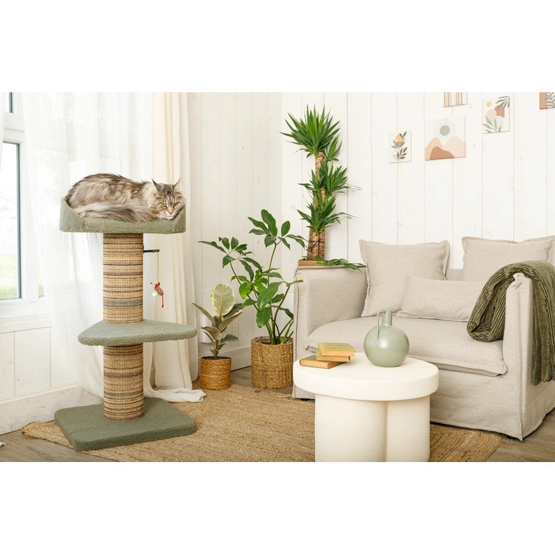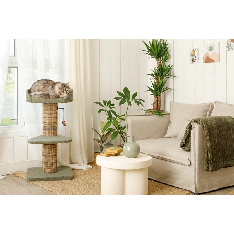 ZOLUX Drapak dla kota BOREAL 95 cm zielony to stabilne i nowoczesne centrum aktywności, zaprojektowane z myślą o codziennych potrzebach kotów w każdym wieku. Wysoka konstrukcja z wygodnym legowiskiem na szczycie, solidnym słupkiem sizalowym oraz praktycznym schodkiem sprawia, że drapak doskonale sprawdzi się zarówno u dużych, aktywnych kotów, jak i u seniorów potrzebujących łatwiejszego dostępu do wyższych poziomów.