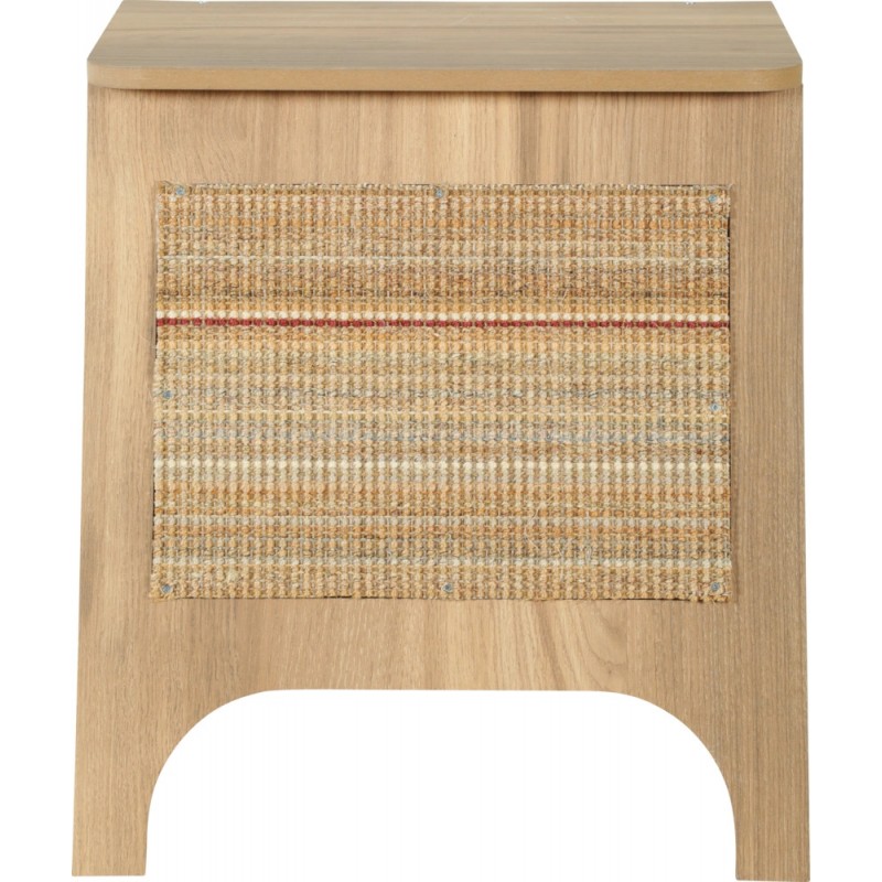 - Materiał: MDF melaminowany (FSC®), sizal, tkanina, syntetyczne futerko (poducha)